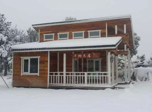 實(shí)木堆砌而成,它會比輕型木屋更堅(jiān)固耐久,居住舒適